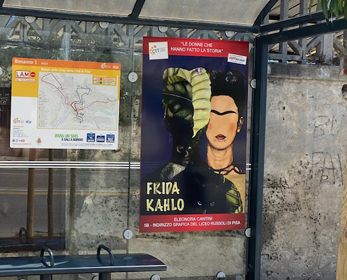 Prosegue la collaborazione con il Liceo Russoli di Pisa dove gli studenti hanno realizzato dei bellissimi ritratti che sono stati affissi all’interno delle pensiline della città.