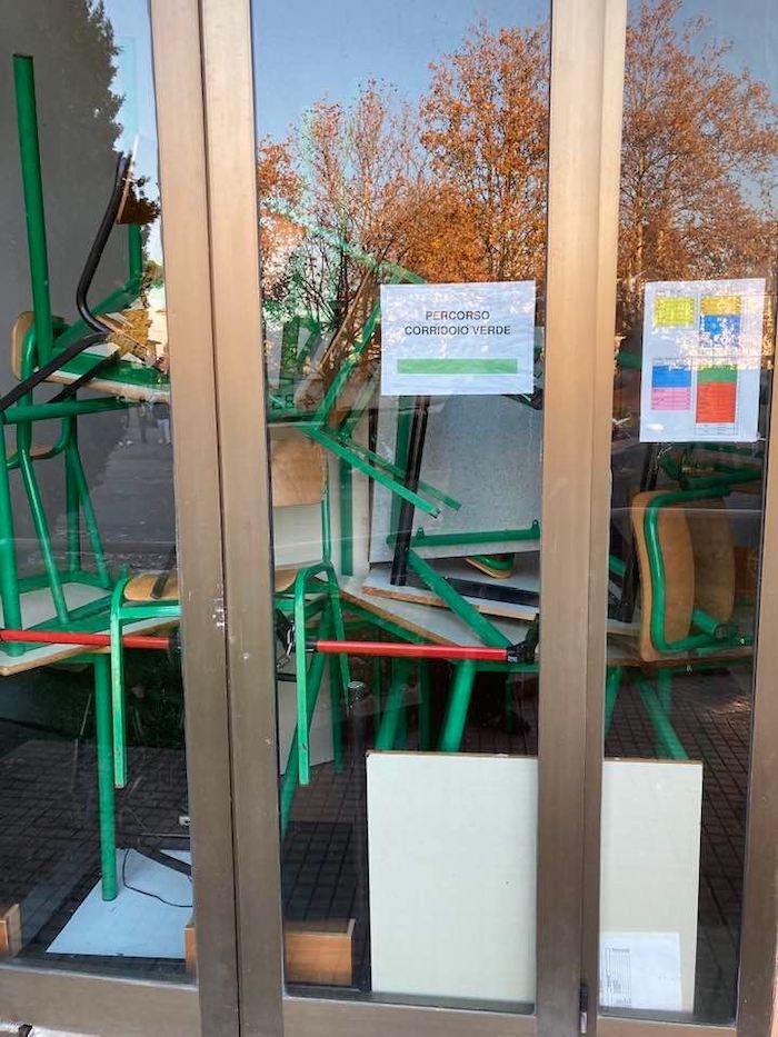 Armadi rovesciati, materiali sparsi dappertutto, barriere costruite e uno striscione lasciano pensare che sia opera di studenti per occupare l’istituto