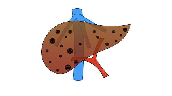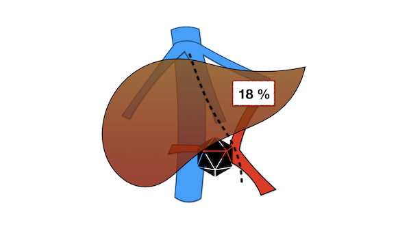 A febbraio 2021 era stato eseguito un intervento particolarmente difficile per rimuovere in un’unica procedura venti metastasi da neoplasia del colon-retto distribuite a tutto il fegato (figura 1). Dopo sei mesi, come purtroppo può accadere, la malattia si è ripresentata al fegato coinvolgendo la via biliare e la vena porta. Questa volta la situazione non appariva più gestibile chirurgicamente dato che – oltre alla complessità tecnica dovuta alla necessità di ricostruire vena porta e via biliare – il volume del fegato residuo (il lobo epatico sinistro) sarebbe stato inferiore al 20%, quindi incompatibile con la vita, a causa dell’insufficienza epatica che si sarebbe verificata dopo l’intervento (figura 2).