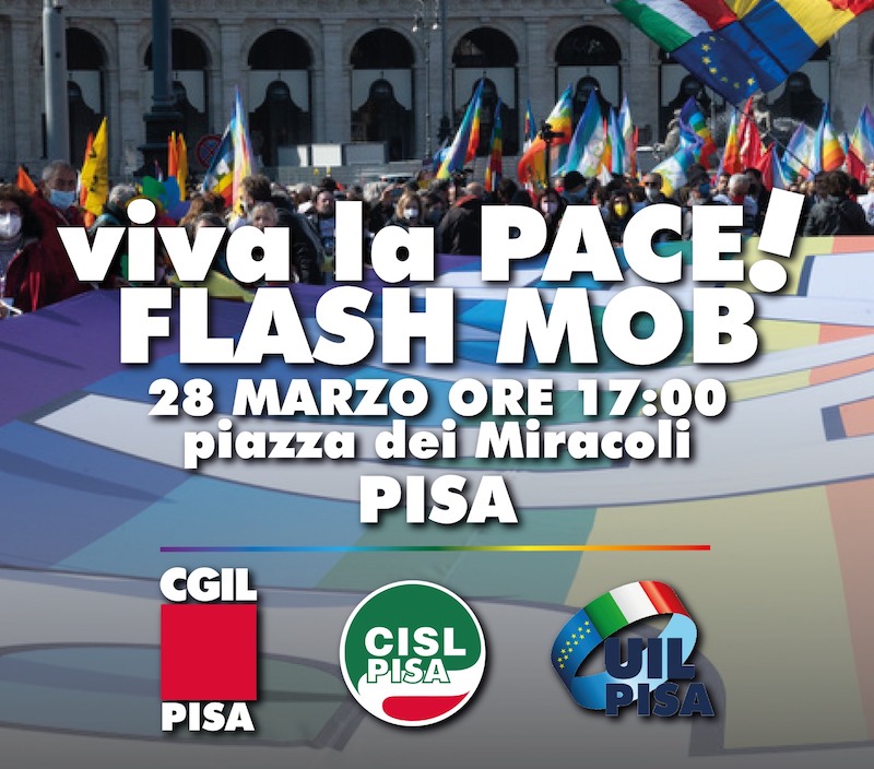 Lunedì 28 marzo 2022 dalle ore 17 alle ore 19 in Piazza dei Miracoli a Pisa si svolgerà un Flash Mob promosso da Cgil Cisl Uil di Pisa.