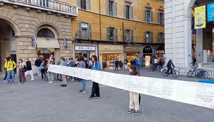 Dalla pagina Facebook ufficiale del gruppo Pisano:“Siamo scesi in piazza con un flash mob, per mostrare come tutte le 25 COP fatte in questi anni si siano concluse con un nulla di fatto, e come non siano state prese dai governi decisioni effettive riguardo alla crisi climatica” (Gea, 14 anni).