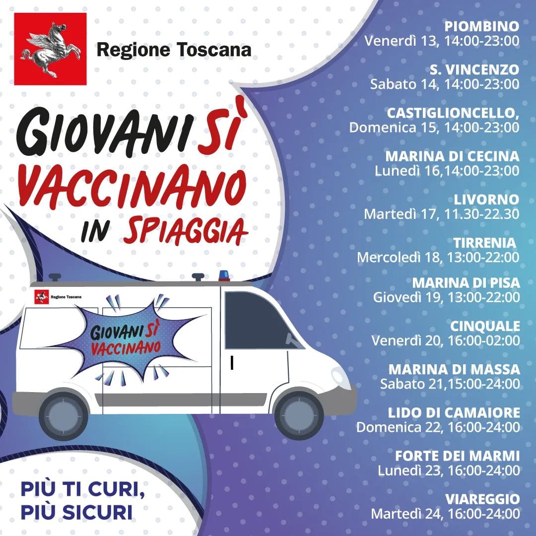 “Tramite queste nuove tappe risaliamo tutta la costa della Toscana con ‘GiovaniSìVaccinano’ – spiega il consigliere per le politiche giovanili, Bernard Dika -. La Toscana è in campo per vaccinare tutti, senza mai fermarsi. Anche nel weekend e a Ferragosto il camper è in spiaggia. Le parole di apprezzamento del commissario straordinario per l’emergenza Figliuolo al presidente Giani testimoniano il valore dell’iniziativa. Ringrazio i giovani, che stanno dando l’esempio, e gli operatori sanitari impegnati, avanti!”.