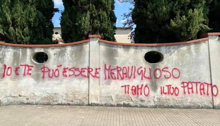 Il vandalo romantico, che si firma “Patato”, armato di vernice rossa ha continuato a lasciare i suoi messaggi d’amore in altri punti, sulla tosco romagnola fino a Cascina (“guardarti e dirti ciao era bellissimo, il tuo patato a Marciana; vivimi senza paura, ti amo il tuo patato).
