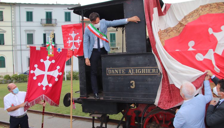 «Sono veramente contento di avere ritrovato – dichiara l’assessore al turismo Paolo Pesciatini -, dopo una attenta ricerca, la locomotiva del trammino, unica superstite, la “Dante Alighieri”, che oggi, nel 700 anniversario della morte del poeta, per l’appunto, andiamo a ricollocare sul suo originario tracciato. Il ritrovamento è stato possibile grazie al Sig. Luciano Dué, pisano e grande appassionato della nostra storia, ad Antonio Arcucci che sapeva delle mie ricerche intorno alla locomotiva, e alla ditta Ferrato di Padova che l’ha conservata, stipulando con noi un comodato gratuito per esporla alla nostra comunità. Ringrazio i nostri uffici, l’architetto Pasqualetti, Guerrazzi, Bacciardi e il professor Vasarelli per i suoi studi e il supporto storico durante la fase del ritrovamento. A distanza di poco tempo, siamo a completare questa piazza con un pezzo della nostra storia. Dobbiamo sentirci tutti politicamente responsabili della bellezza dei nostri luoghi dell’abitare e le piazze sono i luoghi dell’interazione e delle relazioni. Conservando e migliorando le nostre città e i nostri luoghi miglioriamo anche noi stessi. I nostri luoghi dell’abitare sono il segno tangibile della nostra anima comunitaria, ed è anche per questo dobbiamo tutelarli e trasmetterli alle prossime generazioni».