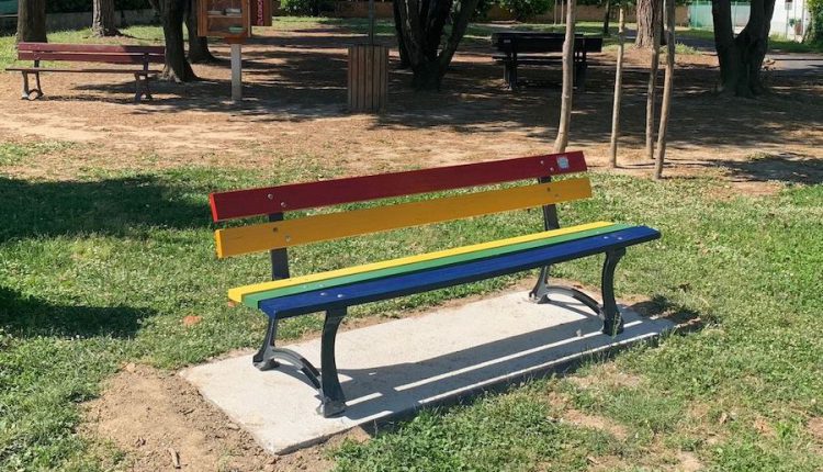 “Abbiamo ripristinato la panchina arcobaleno in piazza Tempesti a Ghezzano, stavolta fissandola bene al terreno.