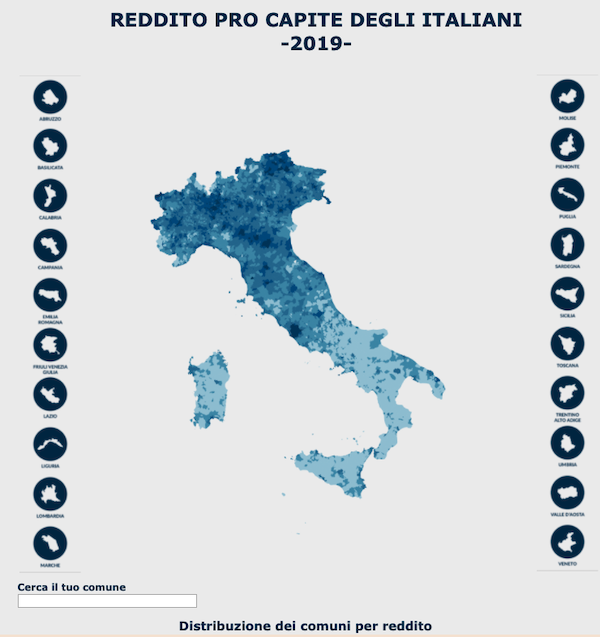 La società bergamasca Intwig che si occupa di dati e statistiche, ha analizzato i dati diffusi due giorni fa dal Ministero dell’Economia e delle Finanze relativi ai redditi 2019 di ogni Comune d’Italia.