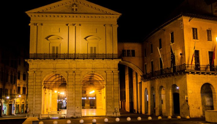 Le Logge dei Banchi colorate di giallo-blu contro la guerra e in sostegno del popolo ucraino