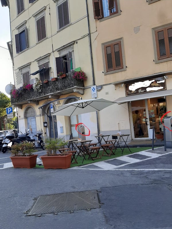 “Ecco cosa succede a Pisa: il posto per la ricarica delle auto elettriche, occupato da sedie e tavolini. Questo in via Porta a Mare. Bella figura che si fa con i turisti e i cittadini. Anche se ho chiamato la Polizia Municipale, niente è cambiato”