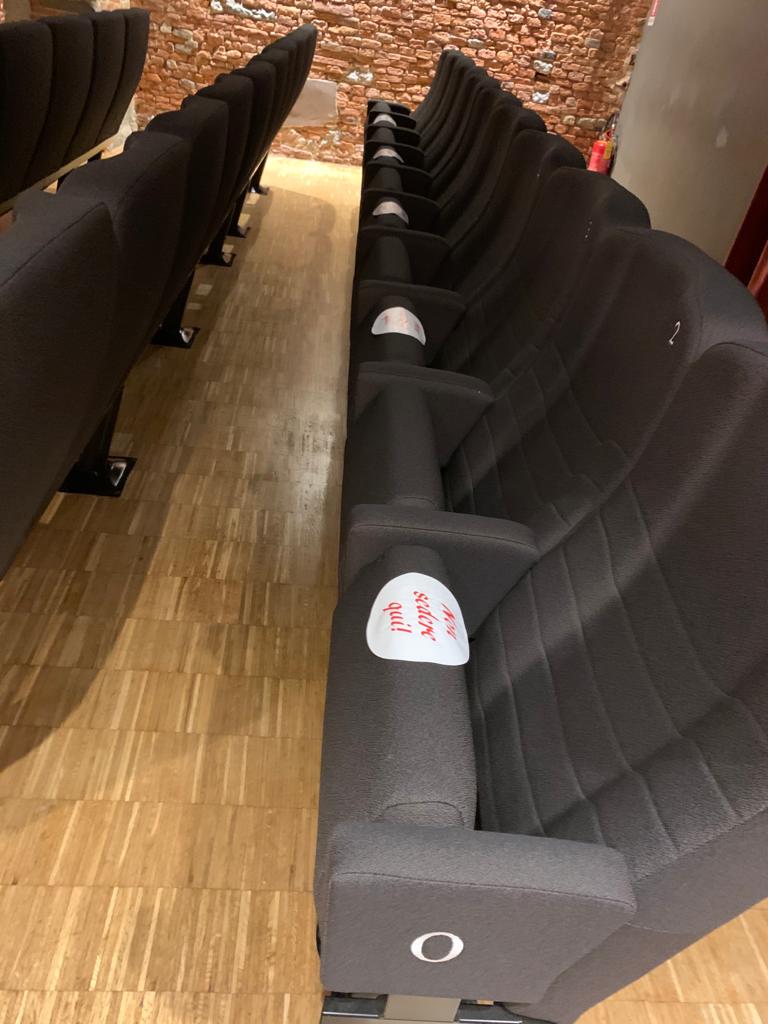 Entrando nel dettaglio, per accedere al Cinema Arsenale è obbligatorio l’utilizzo della mascherina chirurgica o superiori. Non è quindi permesso l’ingresso con le mascherine in tessuto e per chi non l’avesse viene fornita alla cassa. La capienza della sala è stata ridotta al 50%, ovvero a 70 posti massimo. I posti sono stati organizzati a “scacchiera” (vedi foto in basso) e la regola vale anche per amici, parenti o conviventi per “evitare qualsiasi tipo di incomprensione”. L’entrata e l’uscita del pubblico avviene da due ingressi separati.