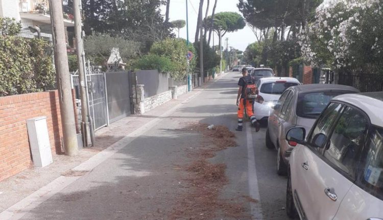 Dopo le forti raffiche di Libeccio il Comune provvede alla rimozione degli aghi di pino