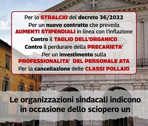 A Pisa, da questa mattina alle 9:30, in Piazza XX Settembre, è in corso un presidio organizzato da Cgil Pisa. Disagi al traffico e nelle strutture scolastiche di tutta la provincia.