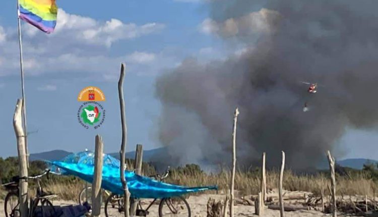 Nuovo incendio boschivo sul lungomare di Torre del Lago