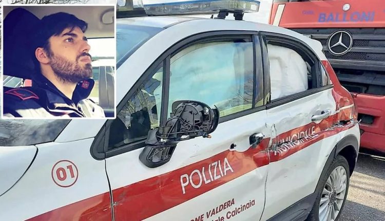 Sperona l’auto della municipale con il Tir e scappa