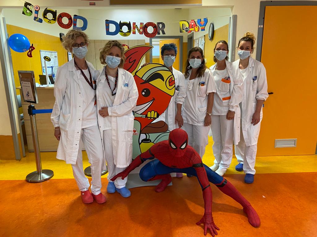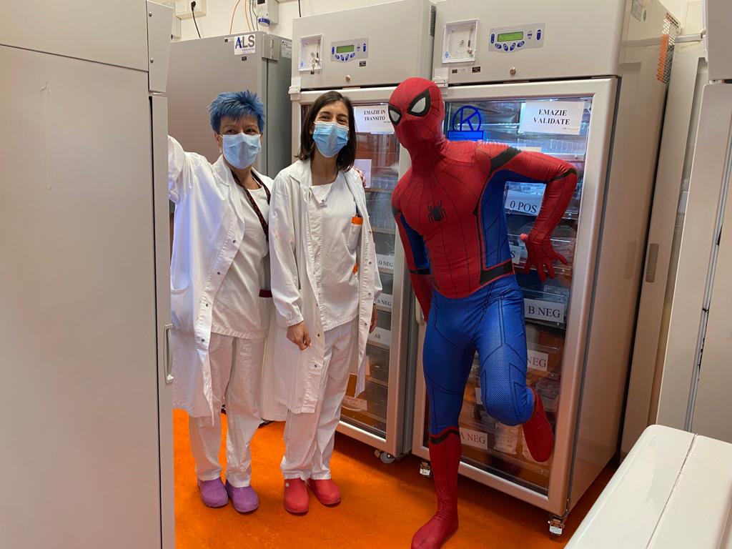 Spiderman al Trasfusionale di Pontedera per la Giornata Mondiale della Donazione di Sangue