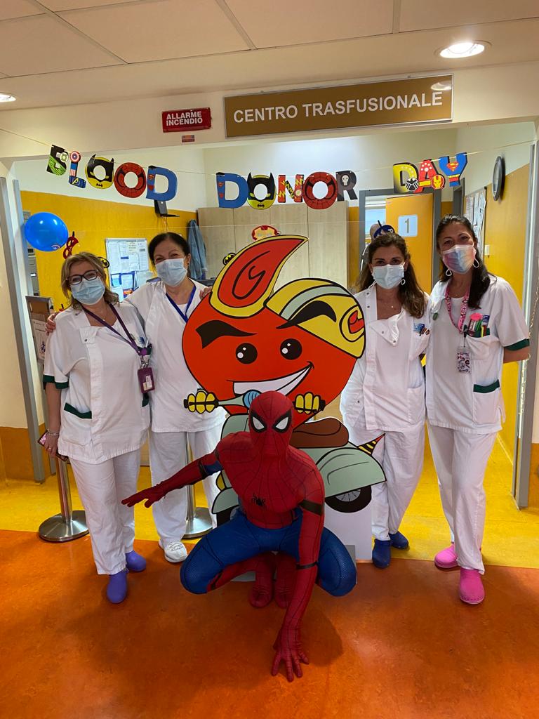 Spiderman al Trasfusionale di Pontedera per la Giornata Mondiale della Donazione di Sangue