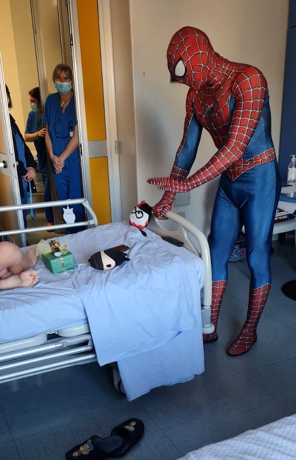Così questa mattina il loro testimonial d’eccezione è stato il supereroe Spiderman, al secolo Mattia Villardita, il giovane ligure con un passato trascorso negli ospedali da bambino per una malattia congenita e che ormai da anni visita i reparti pediatrici degli ospedali italiani per andare personalmente a incontrare i bambini, ove possibile, o comunque regalare l’oro l’emozione di aver visto in carne e ossa il supereroe dei fumetti così tanto amato. Un modo estremamente efficace di supportare le cure e le sofferenze della malattia che gli è valso anche l’onorificenza di Cavaliere dell’Ordine al Merito della Repubblica, consegnatagli direttamente dal Presidente della Repubblica Sergio Mattarella e l’incontro con Papa Francesco.