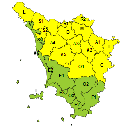 Sia oggi che domani dunque possibili colpi di vento e grandinate nei temporali. In particolare oggi lunedì 26 luglio i venti saranno localmente forti su l’Arcipelago, litorale meridionale, Colline Metallifere, Amiata e zone appenniniche. Confermato il codice giallo per vento fino a stasera 26 luglio sulla costa meridionale e nell’alto Mugello.