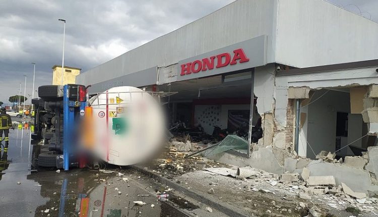 Toscana – Autocisterna sventra la vetrina di una concessionaria
