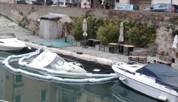 Bomba carta su una barca, affonda imbarcazione in via della Madonna a Livorno