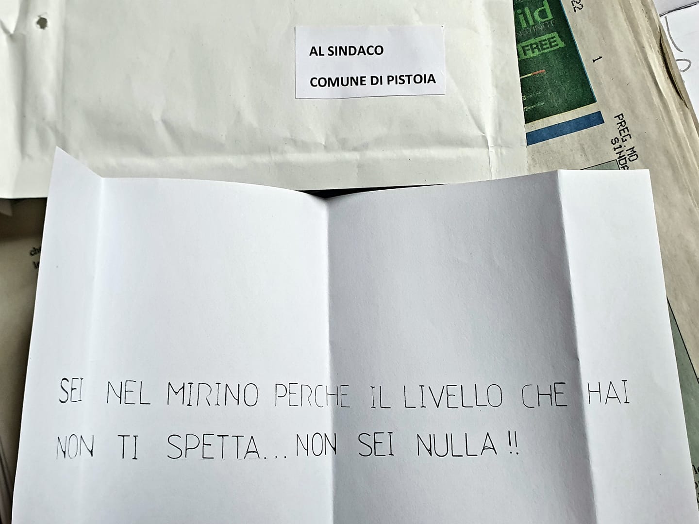 La lettera minatoria in una busta bianca è stata recapitata al primo cittadino Alessandro Tomasi